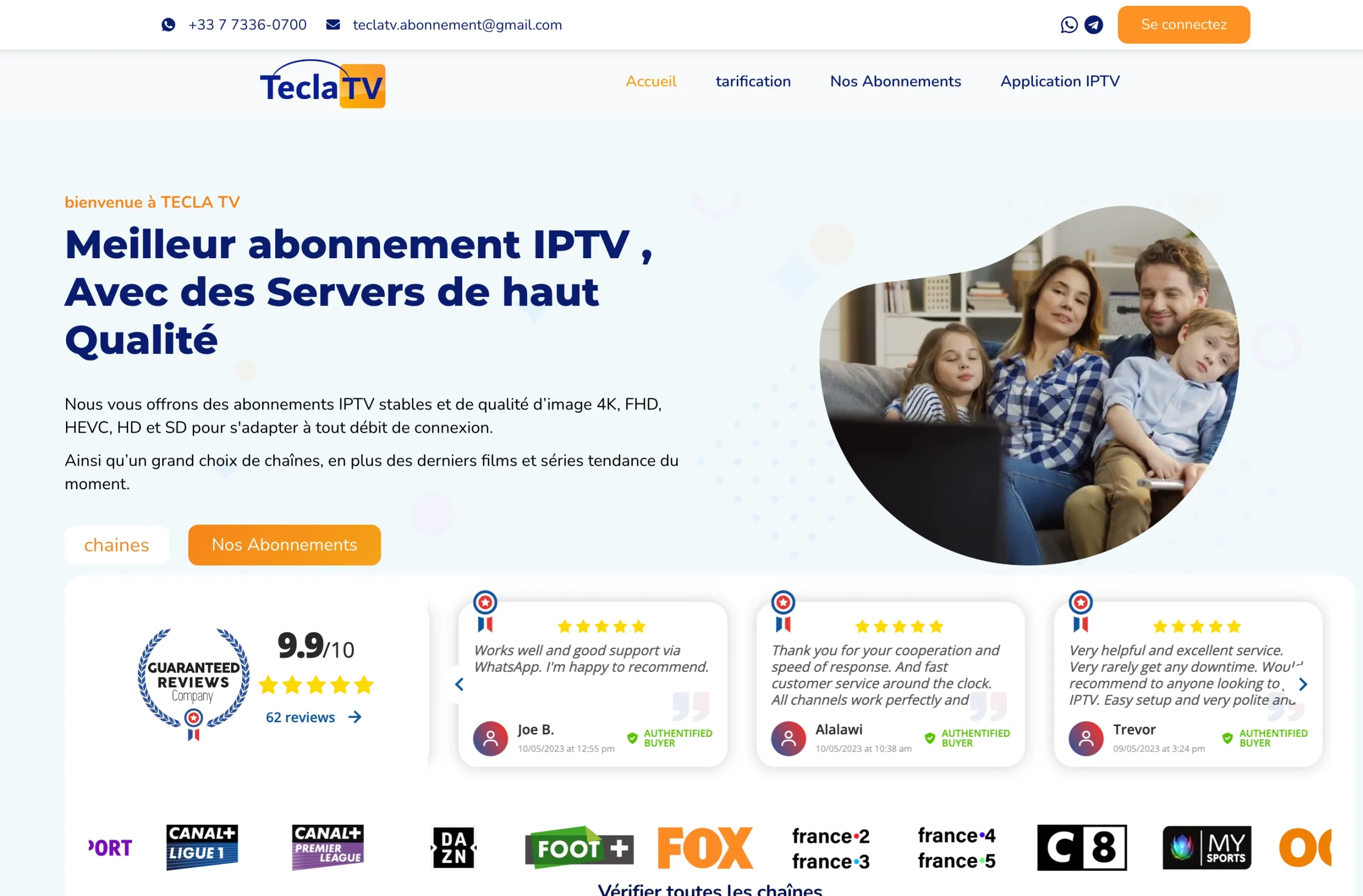 Conclusion Pour seulement 64€/an, vous aurez accès à une vaste playlist comprenant entre 26 000 et 180 000 films et séries. De plus, un support est disponible 7 jours sur 7 via les célèbres services de chat en ligne : « WhatsApp / Site web / Email ». Vous pouvez également personnaliser votre playlist avec les chaînes de votre choix. Visitez notre site web pour un essai gratuit et rejoignez-nous.